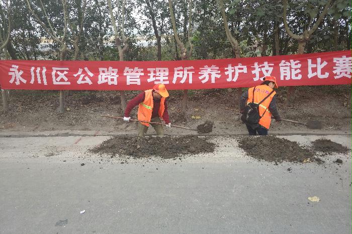 11月17日上午,永川区公路管理所在S108线一环路上组织开展了养护技能比赛,比赛旨在进一步加强公路养护队伍建设,提升公路管养能力,以新业绩、新气象把党的十九大精神贯彻落实到公路养护工作中。来自全区8个公路养护站的20余名一线养路工人参加了比赛。