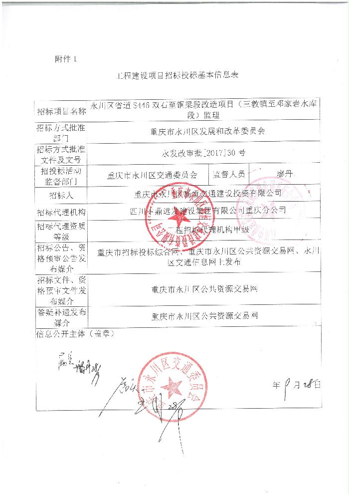 永川区省道S446双石至铜梁段改造项目(三教镇至邓家岩水库段)监理工程建设项目招标投标基本信息表